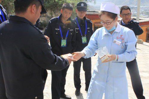 8月14日上午,阜康醫(yī)院組織起一支醫(yī)療小分隊(duì),攜帶各種藥物與電子血壓計(jì)等醫(yī)療器械,在醫(yī)務(wù)科副主任黃川川及歐醫(yī)生等人的帶領(lǐng)下,奔赴哲蚌寺,步行走過(guò)寺廟各大角落,為駐守哲蚌寺各條線路的廣大執(zhí)勤民警送醫(yī)送藥,送去關(guān)懷。