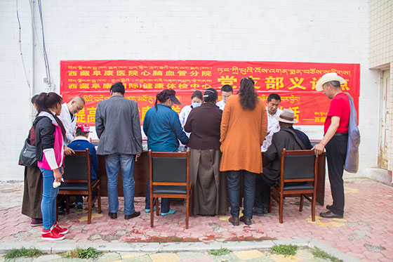 為深入貫徹落實黨的群眾路線政策,用實際行動推進“兩學一做”學習教育開展,2016年5月22日上午,西藏阜康醫(yī)院心腦血管分院及體檢中心黨支部組織了一支由醫(yī)、技、護組成的6人醫(yī)療隊走進仙足島生態(tài)園小區(qū)開展主題為“提高居民健康素養(yǎng),構(gòu)建幸福和諧生活”的義診活動。