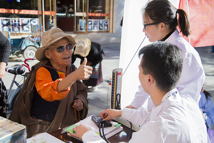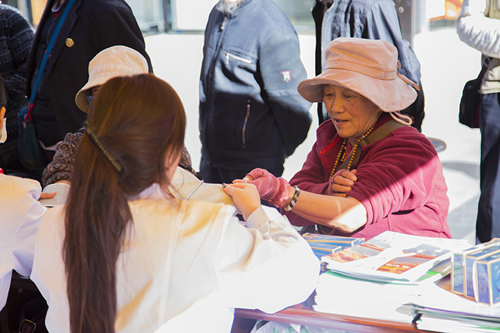 自14日早上九點活動開始,前來阜康醫(yī)藥義診宣傳點測血壓、測血糖、咨詢身體健康問題及安全用藥知識的人便絡繹不絕,整整一上午,阜康醫(yī)藥16名醫(yī)護人員都在一刻不停的忙前忙后,但能夠為廣大藏族同胞及社會群眾服務,大家都絲毫不覺得辛苦,反而發(fā)自內心的感到充實與喜悅。據活動結束后統(tǒng)計,本次活動西藏阜康醫(yī)藥發(fā)展有限公司免費發(fā)放各類相關資料千余份,免費發(fā)放維生素、鈣片、風濕及心腦類等藥品一萬兩千余元,免費測血壓、血糖、看病等也多達數(shù)百人次。