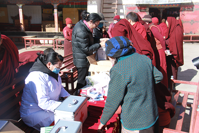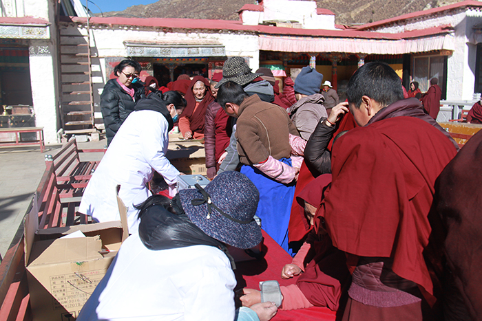 為進(jìn)一步體現(xiàn)黨和政府對(duì)廣大僧眾的關(guān)心關(guān)愛(ài),切實(shí)解決僧人看病難的實(shí)際困難,保障僧人身心健康,落實(shí)各項(xiàng)利寺惠僧政策,2017年2月11日,區(qū)黨委老干部局聯(lián)合西藏阜康醫(yī)院專家來(lái)到曲水縣雄色寺,為當(dāng)?shù)厣姾托沤倘罕婇_展送醫(yī)送藥免費(fèi)義診活動(dòng)。