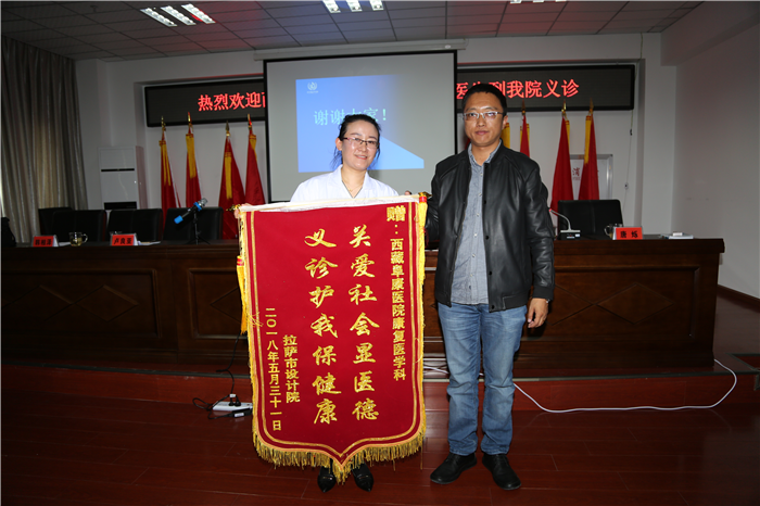 拉薩市設(shè)計(jì)院常務(wù)副院長(zhǎng)尼扎向劉佳主任贈(zèng)送錦旗