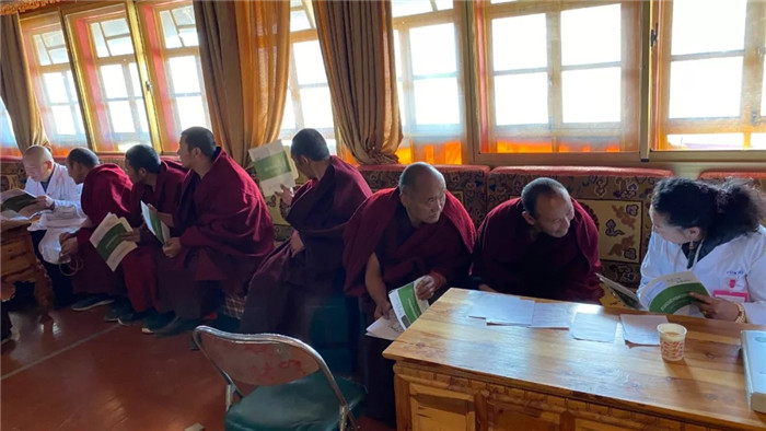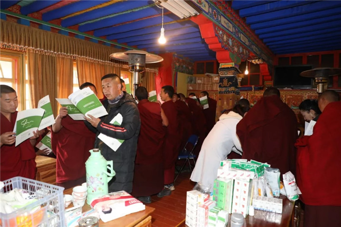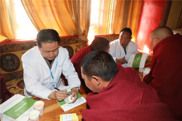據(jù)了解,甘丹寺管委會安排223名僧侶于2019年12月19日至2020年1月15日來我院體檢中心分批進(jìn)行了身體檢查,為了方便僧侶們?nèi)∽x報告,西藏阜康醫(yī)院秉持著“用我們的知識和良知為人類健康服務(wù)”的企業(yè)宗旨,特意安排專家義診組帶著大家的體檢報告來到寺廟,為大家免費(fèi)進(jìn)行報告解讀并針對性的發(fā)放藥物。