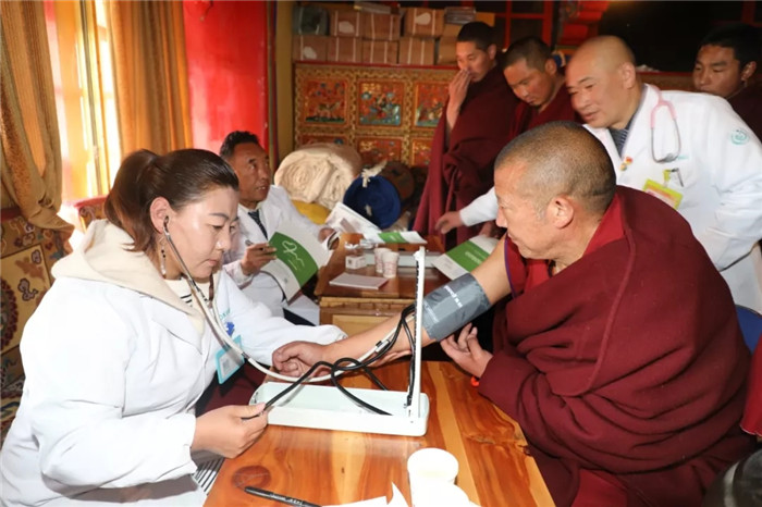 2020年1月19日,受西藏阜康醫(yī)療股份有限公司黨委書記、董事長王斌的委托,在春節(jié)前夕,為甘丹寺僧侶們送醫(yī)送健康,送去阜康新年的祝福。西藏阜康醫(yī)院總院長寧曉帶領(lǐng)阜康醫(yī)院心腦血管院區(qū)及體檢中心專家義診組6名隊員來到甘丹寺,為全寺僧侶發(fā)放、解讀體檢報告,免費(fèi)測血壓、血糖、氧飽和度,并發(fā)放常見疾病藥品(共計12000余元)。