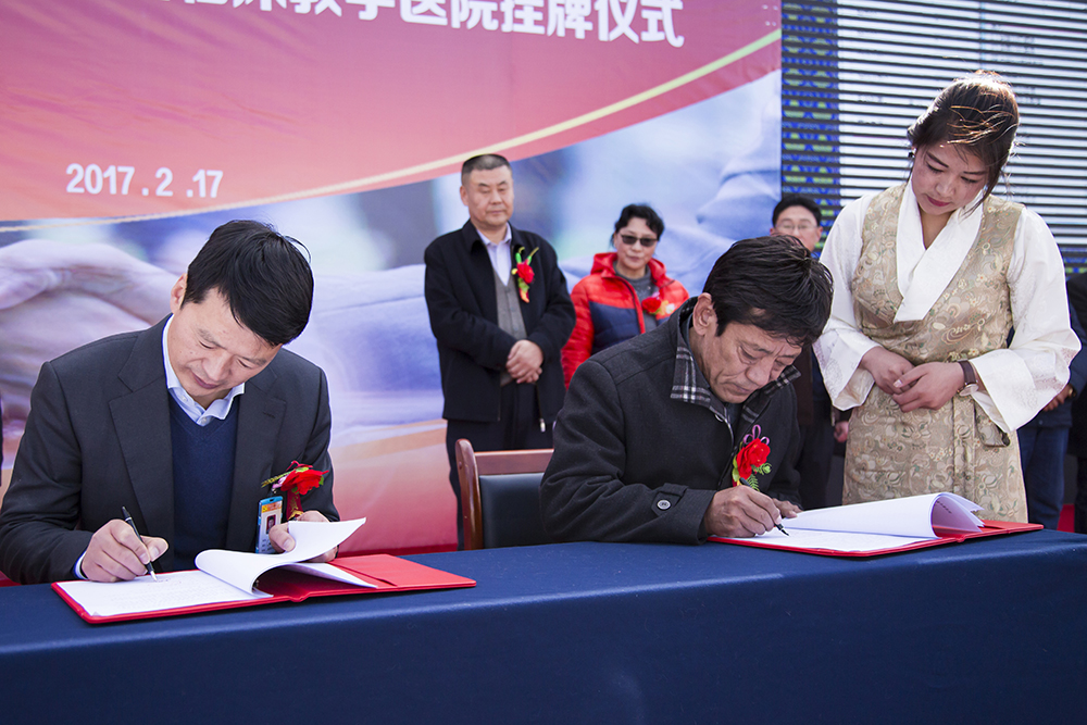 醫(yī)教協(xié)同發(fā)展,共促百姓健康。2017年2月17日下午15時(shí)30分,西藏藏醫(yī)學(xué)院與西藏阜康醫(yī)院全面戰(zhàn)略合作協(xié)議簽字暨臨床教學(xué)醫(yī)院掛牌儀式在西藏阜康醫(yī)院有限公司婦產(chǎn)兒童分院隆重舉行。