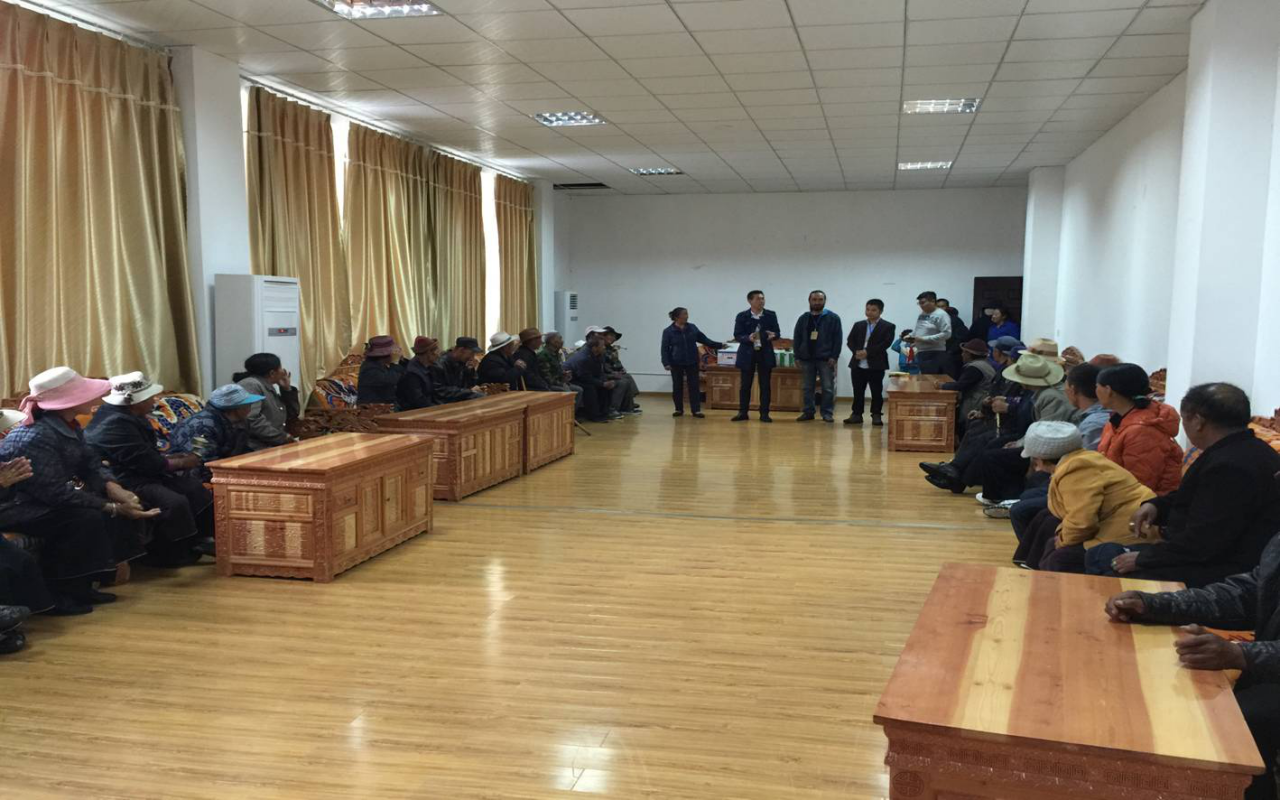 為了更好地和老人融為一體,了解老人的需求,我服務(wù)中心經(jīng)請示相關(guān)領(lǐng)導(dǎo)后,參照巴宜區(qū)社會福利院羅吉院長意見,攜帶總價值1500多元的水果、牛奶等物品于2016年9月2日下午17:30分到達(dá)林芝市巴宜區(qū)社會福利院慰問該院入住老人及院內(nèi)管理、護(hù)理等工作人員。在巴宜區(qū)民政局領(lǐng)導(dǎo)和該院羅吉院長的組織下,老人們早早等候在會見室。西藏自治區(qū)在線醫(yī)養(yǎng)結(jié)合服務(wù)中心負(fù)責(zé)人鮑才華代表自治區(qū)民政廳徐副廳長、王處長及西藏阜康醫(yī)院王董向老人們和全院工作人員轉(zhuǎn)達(dá)節(jié)日問候。羅吉院長就此次民政廳領(lǐng)導(dǎo)、西藏阜康領(lǐng)導(dǎo)的關(guān)懷與慰問等事宜向該院老人做了深刻講解。服務(wù)中心規(guī)劃設(shè)計(jì)團(tuán)隊(duì)在該院領(lǐng)導(dǎo)及老人代表陪同下,按該院需求對院區(qū)進(jìn)行了實(shí)地丈量規(guī)劃,并大量征求了老人們的意愿,大家一起交流希望,并得知老人們希望將原有食堂規(guī)劃改建成老人們精神寄托的藏式景觀。相信在大家的努力下,在不久的將來,一座老人們夢想的家園將會拔地而起,老人們會在這里度過自己最幸福安詳?shù)耐砟辍?/p>