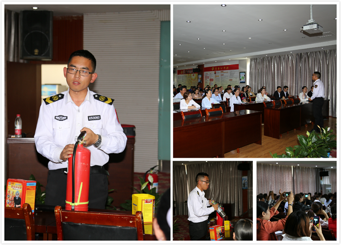 會(huì)議首先播放了消防公益宣傳短片,之后結(jié)合國(guó)內(nèi)重大火災(zāi)案例分析了因各種應(yīng)對(duì)不當(dāng)造成的人身和財(cái)產(chǎn)重大損失,提醒大家進(jìn)一步提高消防安全意識(shí)和消防安全四個(gè)能力。靳炎龍對(duì)日常生活與工作中容易引起火災(zāi)的各種隱患進(jìn)行了分析,講解了遇到火災(zāi)報(bào)警的四要素,以及正確的現(xiàn)場(chǎng)滅火自救措施。會(huì)議現(xiàn)場(chǎng)還就滅火器的使用知識(shí)進(jìn)行了互動(dòng),對(duì)一些新型的滅火器材進(jìn)行了介紹。