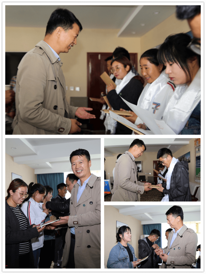 隨后,王斌董事長向7名規(guī)培生門頒發(fā)了《阜康員工守則》,并敬獻(xiàn)了潔白的哈達(dá),佩戴了阜康院徽,他臨別叮囑:“謹(jǐn)記阜康囑托,謹(jǐn)守阜康準(zhǔn)則,不辱阜康之名,為阜康爭榮!希望你們能夠腳踏實(shí)地在華西醫(yī)院和成都市第三人民醫(yī)院帶教老師的指導(dǎo)下完成規(guī)培計(jì)劃,并在三年內(nèi)考過執(zhí)業(yè)醫(yī)師資格證和規(guī)范化培訓(xùn)資格證,按時(shí)歸來服務(wù)阜康、報(bào)效西藏!”