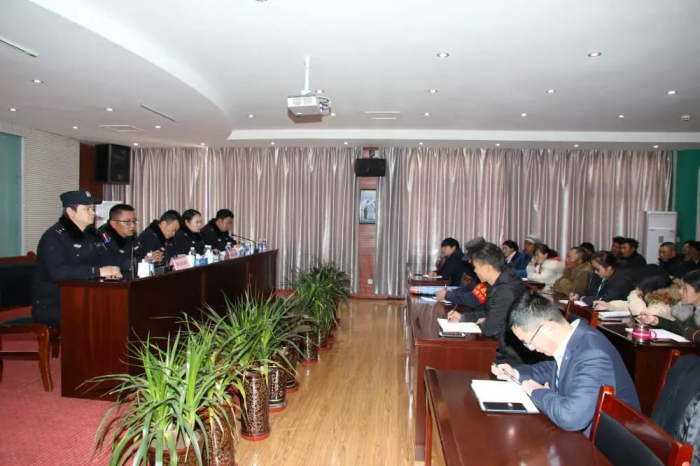 城關(guān)區(qū)公安局執(zhí)法監(jiān)督大隊大隊長張?zhí)裣虼蠹移占傲司S護社會穩(wěn)定對于每個社會組織以及每個人的重要意義,希望大家充分理解公安民警的工作,并主動配合公安機關(guān)的各項維穩(wěn)措施;張?zhí)裢瑫r傳達了“掃黑除惡、打非治亂”行動在我區(qū)的推進情況,希望大家從自我做起,人人為“掃黑除惡、打非治亂”行動做貢獻,以更好地保障自身人身和財產(chǎn)安全。