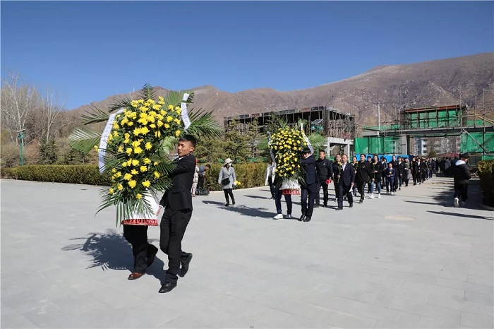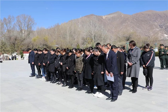 儀式結(jié)束以后,全體黨員整齊肅穆地走過(guò)紀(jì)念碑,懷著對(duì)革命先烈的崇敬之情瞻仰了烈士陵墓,同時(shí)聽(tīng)取引導(dǎo)人員關(guān)于革命烈士的事跡介紹。在烈士英名墻下,大家仔細(xì)瀏覽烈士的名字;在領(lǐng)導(dǎo)干部的楷??追鄙镜哪贡埃蠹疑钌罹瞎磉_(dá)對(duì)革命先烈的崇敬與追思;面對(duì)一排排長(zhǎng)眠的革命烈士,大家深切感受黨的事業(yè)所經(jīng)歷的艱辛與付出的巨大犧牲,深深思考作為一名新時(shí)代的中國(guó)共產(chǎn)黨員應(yīng)該如何肩負(fù)起歷史賦予的使命,在黨中央和區(qū)黨委的堅(jiān)強(qiáng)領(lǐng)導(dǎo)下,為西藏的穩(wěn)定發(fā)展、為中華民族的偉大復(fù)興貢獻(xiàn)自己的力量,堅(jiān)決做一名無(wú)愧于黨和人民、無(wú)愧于時(shí)代的合格共產(chǎn)黨員。