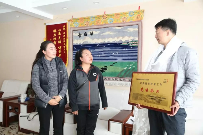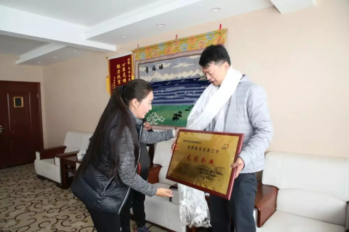 隨后,才旦卓嘎向阜康醫(yī)療股份有限公司黨委書記、董事長(zhǎng)王斌頒發(fā)“脫貧攻堅(jiān)工作先進(jìn)企業(yè)”匾牌。