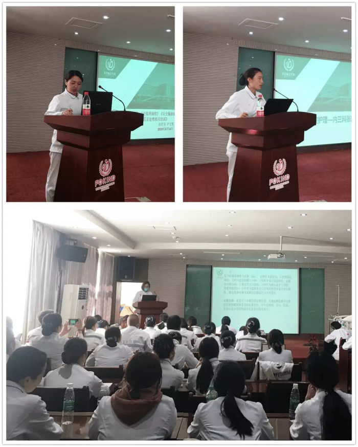 6月19日下午,在院長助理、護(hù)理部主任李麗的指導(dǎo)下,我部組織了阜康醫(yī)院共62名護(hù)理人員在阜康婦產(chǎn)兒童醫(yī)院四樓會(huì)議室開展了以“口腔護(hù)理”、“血糖監(jiān)測”、“查對制度、交接班制度、安全輸血制度、護(hù)理糾紛防范及處理”的相關(guān)培訓(xùn)。內(nèi)三科護(hù)士長張穎結(jié)合科室遇到的口腔護(hù)理操作,針對口腔護(hù)理用物準(zhǔn)備、口腔護(hù)理的適應(yīng)癥、常用溶液的作用、口腔護(hù)理的操作流程等方面進(jìn)行了講解;外二科護(hù)士長陳群就血糖監(jiān)測結(jié)合臨床經(jīng)驗(yàn)針對血糖監(jiān)測的目的,操作流程及對糖尿病患者的健康宣教進(jìn)行講解;治療室護(hù)士長尹文雋在講解制度中再三強(qiáng)調(diào)我們護(hù)理操作中要時(shí)刻銘記“患者需求至上”的核心價(jià)值觀,做到患者安全、護(hù)理安全,全心全力為患者服務(wù)。