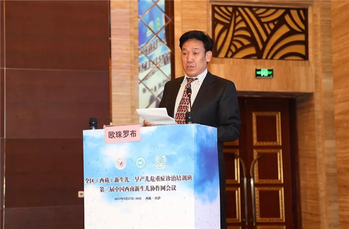 西藏阜康醫(yī)療股份有限公司總裁、西藏阜康醫(yī)院院長寧曉代表承辦方對中華醫(yī)學會兒科分會新生兒學組、中國西南新生兒協(xié)作網、重慶醫(yī)科大學附屬兒童醫(yī)院新生兒中心和西藏醫(yī)學會兒科專委會的信任和支持表示謝意,并預祝會議取得圓滿成功;