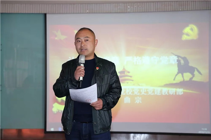 曲宗副教授首先明確了黨章 “根本大法”的地位,指出黨章是規(guī)范和指導(dǎo)黨的工作、黨內(nèi)活動、黨的建設(shè)的根本依據(jù)。隨后曲宗副教授介紹了黨章的歷史沿革,以及十九大修改黨章的歷史意義和重要內(nèi)容,號召每一名黨員認真學(xué)習(xí)黨章,嚴格遵守黨章,時刻與黨中央保持一致,自覺做到“兩個維護”。要求每一名黨員都把黨章作為政治思想建設(shè)方面的X光機,每年對照黨章給自己“體檢”一下,紅紅臉、出出汗,牢記入黨初心、遵守黨的紀律,維護一名黨員的思想行為純潔性。