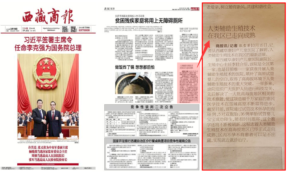 據(jù)西藏阜康婦產(chǎn)兒童醫(yī)院副院長、生殖中心主任李君介紹,該院是一家獲準(zhǔn)開展人類輔助生殖技術(shù)的醫(yī)院,取得了高海拔環(huán)境下人類輔助生殖技術(shù)的重大突破。一年多來,該院組織廣大醫(yī)護(hù)人員進(jìn)行科技攻關(guān),先后解決了一大批高海拔地區(qū)相關(guān)的技術(shù)難題,使這項(xiàng)造福千萬家庭的惠民醫(yī)學(xué)技術(shù)在雪域高原不斷取得進(jìn)步。截至目前,該院通過試管技術(shù)懷孕的有88例,5對雙胞胎、36例單胎寶寶成功降生,隨著時間推移,這個數(shù)字還將不斷被刷新,這標(biāo)志著人類輔助生殖技術(shù)在高海拔地區(qū)已經(jīng)正式走向成熟,區(qū)內(nèi)不孕不育患者可以足不出藏,實(shí)現(xiàn)就近就診治療。