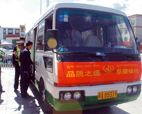 2014年6月1日上午,西藏阜康(國際)健康體檢中心派出免費體檢車,為拉薩市公安局交警隊東西南北郊的執(zhí)勤民警們及女子中隊做了免費體檢。