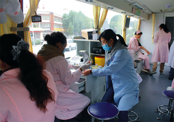 前來參加此次獻(xiàn)血活動(dòng)的人員來自西藏阜康醫(yī)藥發(fā)展有限公司下屬的各醫(yī)院、藥房。有些甚至跟同事?lián)Q了班過來獻(xiàn)血。同志們?cè)陂T診大廳領(lǐng)表單,填好表之后到獻(xiàn)血車前排隊(duì)等待獻(xiàn)血。依次序登上采血車,從驗(yàn)血型到采血人員處獻(xiàn)血?,F(xiàn)場(chǎng)氣氛熱烈,秩序井然。受到獻(xiàn)血現(xiàn)場(chǎng)氣氛的感染,住院家屬以及附近警務(wù)站的警察也加入到獻(xiàn)血隊(duì)伍中來。