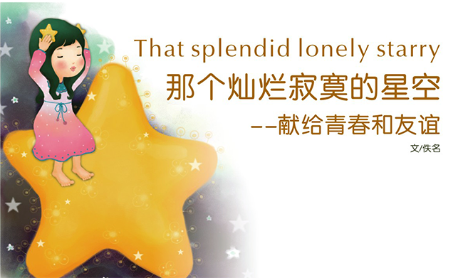 等濃霧散去后,就可以看到最美麗的星空了。”我們是否也能像他們一樣,跳進(jìn)那滿天的星海里,頭枕著星星,卻看見燦爛的陽光。我不知道,有陰影的地方,是否必定有光。仰望星空,我還是愿意相信,你或者其他人,曾經(jīng),正在從世界的某個(gè)地方向我走來。