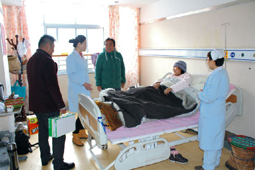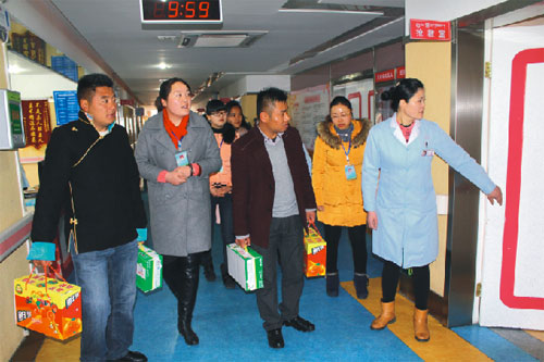 2015年2月19號,西藏阜康醫(yī)院、阜康醫(yī)院婦產(chǎn)兒童分院、阜康醫(yī)院心腦血管分院及阜康(國際)健康體檢中心在院領(lǐng)導(dǎo)的帶領(lǐng)下,去慰問不能出院和家人團聚的患者。醫(yī)院為所有住院患者送上了一份新鮮的水果禮盒及一箱純牛奶。