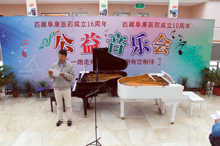 為了慶祝阜康醫(yī)藥發(fā)展有限公司成立十六周年,阜康醫(yī)院成立十周年,2015年6月21日至23日,西藏阜康集團(tuán)公益音樂會(huì)在西藏阜康(國際)健康體檢中心、和香格里拉大酒店成功舉辦,本次音樂會(huì)邀請到了國外友人廣瀨清隆先生及邊天、董樂晨、周于蒨四位音樂家來到西藏為大家公益演出,參加音樂會(huì)的還有著名網(wǎng)絡(luò)歌手邊巴德吉,本次音樂會(huì)受到了社會(huì)各界人士的一致好評。