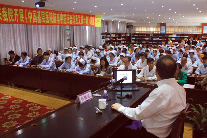 2015年8月24日,北京安貞醫(yī)院腦卒中中心主任、留美醫(yī)學(xué)博士、心血管外科教授、頸動脈內(nèi)膜剝脫術(shù)(CEA)專家、中美腦中風(fēng)協(xié)助組中方組長張勤奕先生不遠(yuǎn)萬里來我院視查工作,并開展了《中國基層醫(yī)院腦卒中防治合作及發(fā)展計劃》講座。