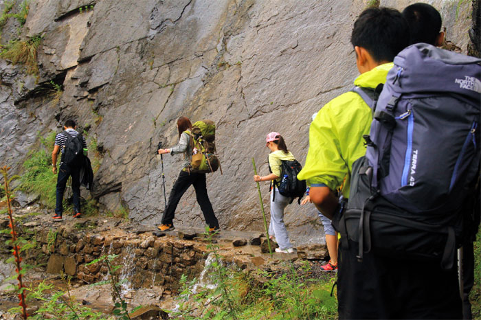 早餐是一大碗雞蛋面,我夾了好多給新疆的大哥,其實(shí)過螞蝗區(qū)后,只要一吃東西真的不由自主就會(huì)有反胃的感覺,不逼著自己真是什么也吃不下。但走在路上,最重要的就是食物和水。不得不吃!