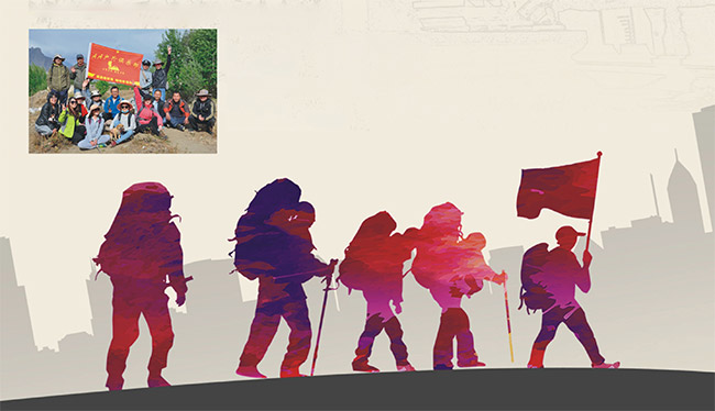 說起當(dāng)初怎么想到發(fā)起這個徒步組織,阿杜一臉驕傲。我喜歡運(yùn)動,和幾位志同道合者一商量,周末徒步吧。后來,加入的人越來越多,就建個徒步群,網(wǎng)上報名或打電話都行?;顒右话闶且惶?,中午伙食怎么解決?開始是自帶水果、點(diǎn)心,誰吃誰的,好像少些團(tuán)隊意識。人多了,想起伙食AA制,我們背著鍋上山,隊友帶什么的都有,水果、糕點(diǎn),葷的、素的,熟的、生的,干牛糞一燒,煮出一鍋大雜燴,又成了高原野炊。其實,只要愿意參加,不在乎你帶不帶吃的,因為我們有飯同吃。如今人人都能吃得飽而豐富,又不提倡多帶,盡量做到吃得干干凈凈,既輕松又節(jié)約還環(huán)保。