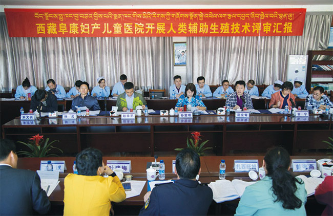 2016年8月19日上午10時許,西藏阜康婦產(chǎn)兒童醫(yī)院人類輔助生殖技術(shù)評審匯報會在西藏阜康婦產(chǎn)兒童醫(yī)院四樓會議室正式開評,孫瑩璞、范立青、趙永平、翁寧、林戈、呂杰強、朱文兵等7位國家衛(wèi)計委專家?guī)鞂<疑W臨我院進(jìn)行評審。扎西旺姆、次仁、姜海燕、匡雪蓮、劉貝貝、葉曉梅、次仁白珍、遲洪濱、劉中娟等9位自治區(qū)、拉薩市衛(wèi)生計生委的領(lǐng)導(dǎo);西藏大學(xué)高原醫(yī)學(xué)研究中心主任、西藏阜康婦產(chǎn)兒童醫(yī)院生殖倫理委員會主任歐珠羅布;西藏阜康婦產(chǎn)兒童醫(yī)院王斌董事長、8位院領(lǐng)導(dǎo)以及我院生殖中心各相關(guān)人員等參加了本次評審匯報會。