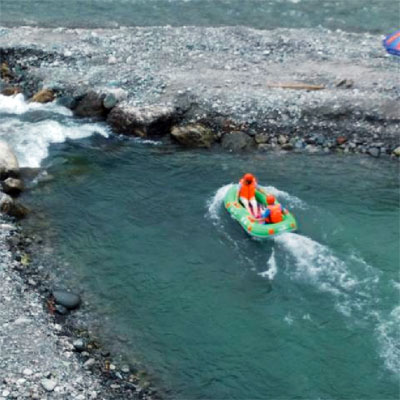 翌日,一大早醒來推開窗戶,便被外面的風景迷住了。霧氣形成一道道白色的緞帶,披在了群山的肩上腰間。木樓的露天陽臺上,同事們都在不停的感嘆和拍照,亦有人在閉目養(yǎng)神,感受大自然的氣息。一起吃過早餐,車隊便駛向白沙河畔,開始了我們期待已久的重頭戲——虹口漂流。虹口漂流被譽為“西部第一漂”,全程近萬米,且落差明顯,不但能讓人享受“乘風破浪,激情飛揚”的驚險樂趣,也能讓人感受到“遠喧囂而返林、近山野而歸真”的生態(tài)魅力。自由漂的皮艇兩人一艇,經(jīng)過初步的適應之后,不同皮艇上的同事們紛紛拿起水瓢,水槍,頭盔等互相潑灑起來,而岸邊的游客也不甘寂寞,拿起各種“武器”參與進來。