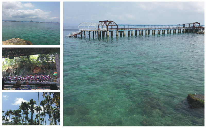 坐上機(jī)場大巴,車?yán)锪硗獾囊粚π∏閭H建議我們跟他們一起,于是到了大東海落腳,住在一個海邊客棧,老板告訴我們說是海景房,由于到的太晚,除了能聽到遠(yuǎn)處漁船的轟鳴什么也看不見。趕路太累,簡單地收拾了行李睡覺。第二天一大早被熱醒,結(jié)果才發(fā)現(xiàn),海南的蚊子太熱情,我們兩個人身上都不同程度地被蚊子給臨幸了。不過旅行的好心情不會被蚊子給攪擾到,抹上防曬霜、戴好帽子……做好一切防護(hù)措施叫上隔壁的小情侶就出發(fā)了。