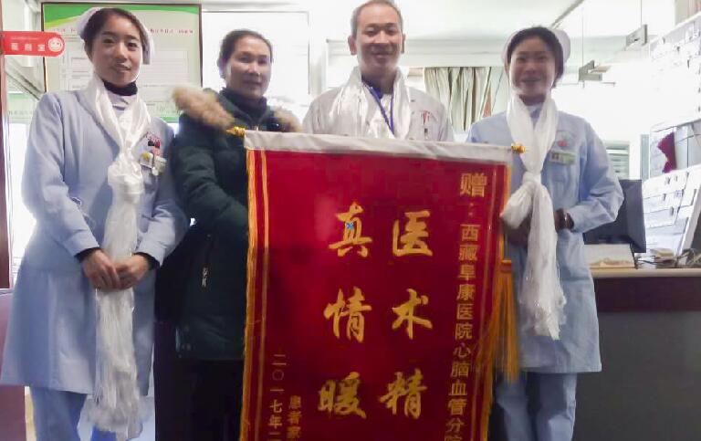 2017年2月26日,患者巴桑(化名)委派家屬為阜康醫(yī)院心腦血管分院送去錦旗,以表達(dá)阜康醫(yī)護(hù)人員對(duì)他的精心醫(yī)治及照顧之情。
